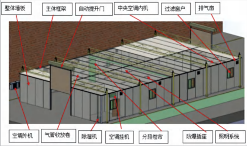 主要由墙体结构、温湿度控制系统、空气净化系统、照明系统等组成(可根据用户需求设计制造)。