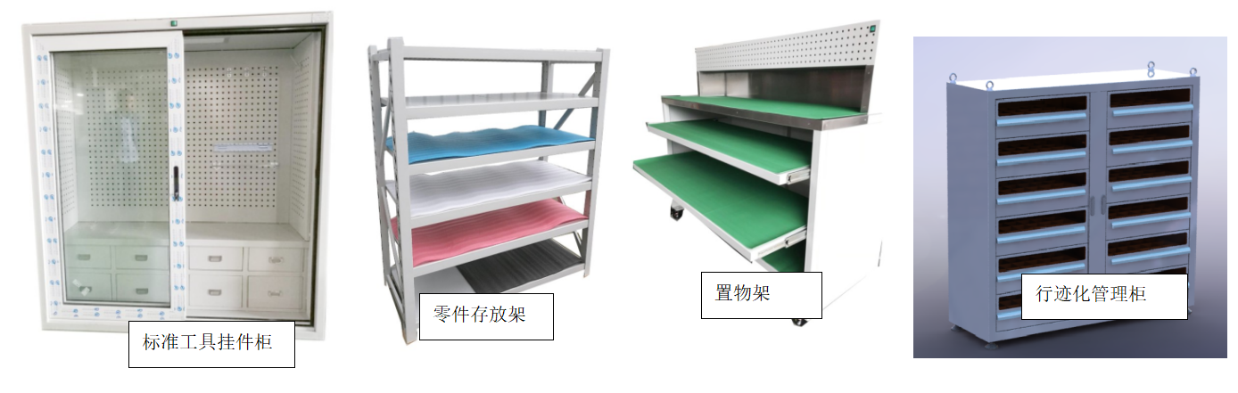 品名分类:小型零件开架管理柜、零件存放架、钻模板存放架、样板存放架、个人工具柜、衣帽柜、饮水机柜、行迹化管理柜等。